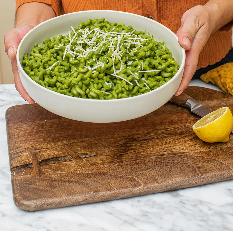 This vegan creamy green pasta is like a garden in a bowl. Baby spinach blends with lemon,