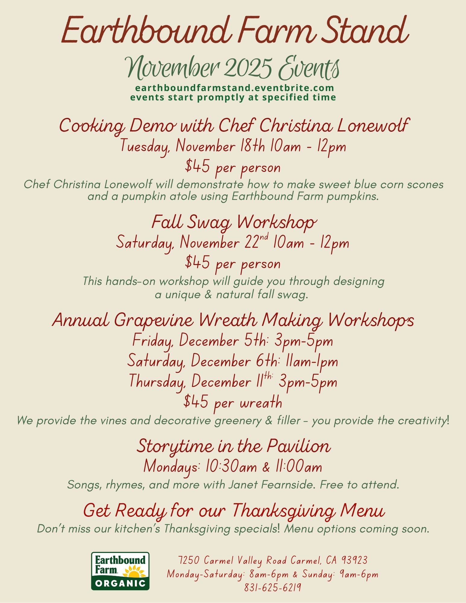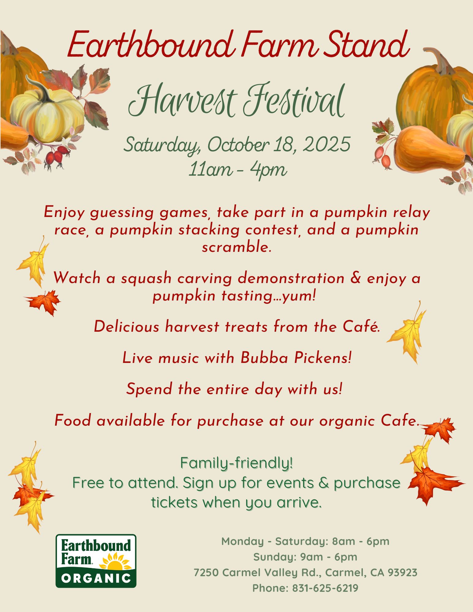 Follow us on our IG: @earthboundfarmstand, email [email protected], or call 831-625-6219